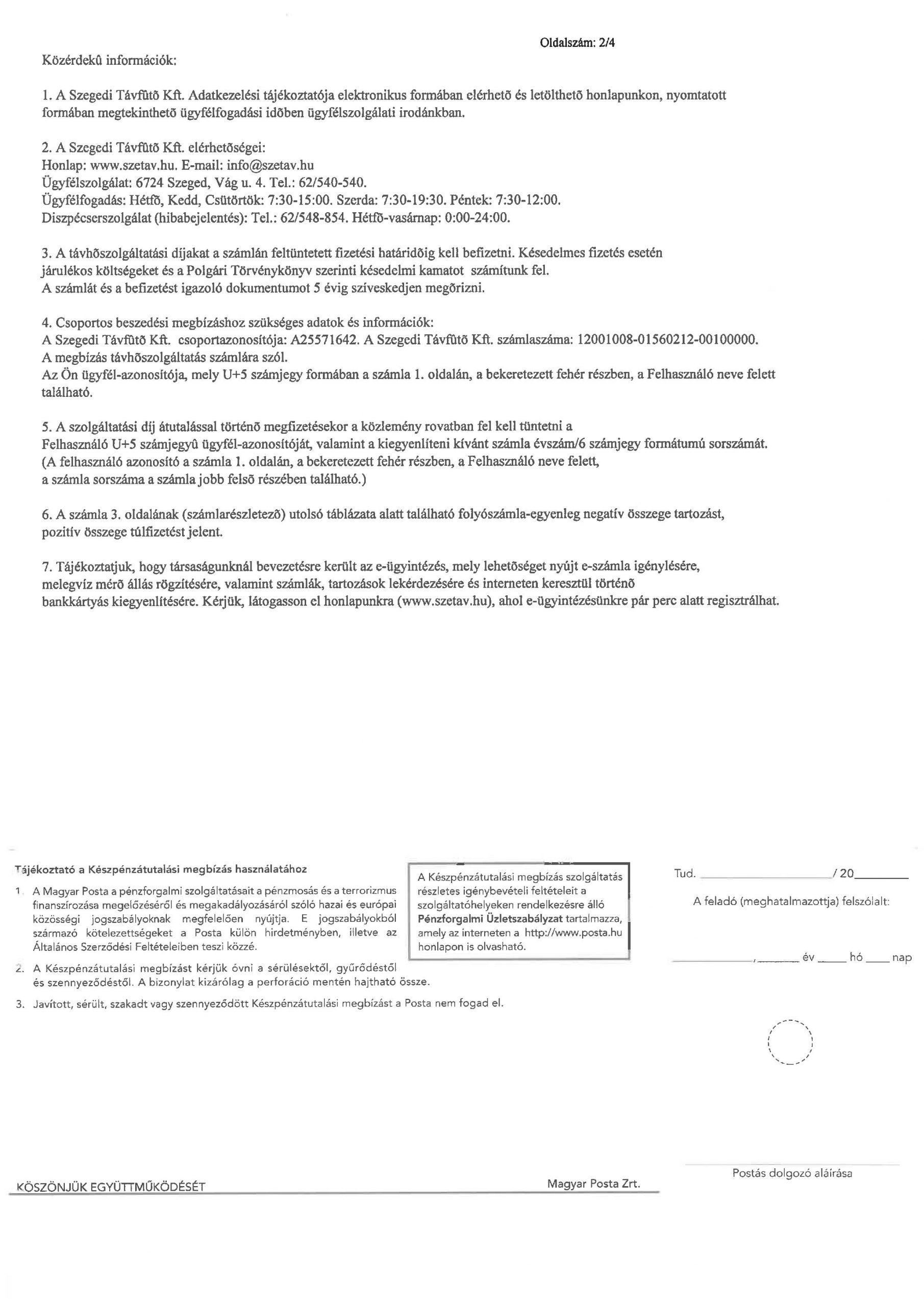A távhőszolgáltatási számla negyedik oldala: