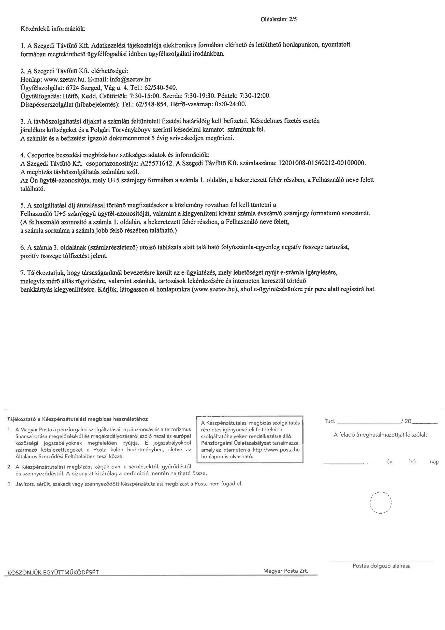 A távhőszolgáltatási számla második oldala: